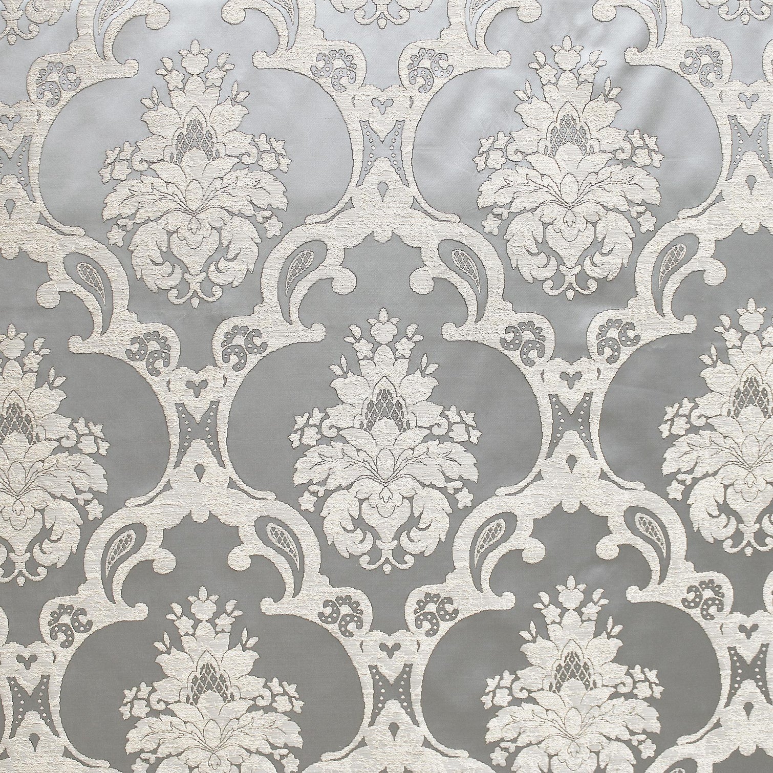 Soft sheen damask faux silk fabric features an elegant large damask woven pattern with a smooth silk-like luster, ideal for drapery, upholstery, and luxury apparel, costume projects. Available in 12 colors.