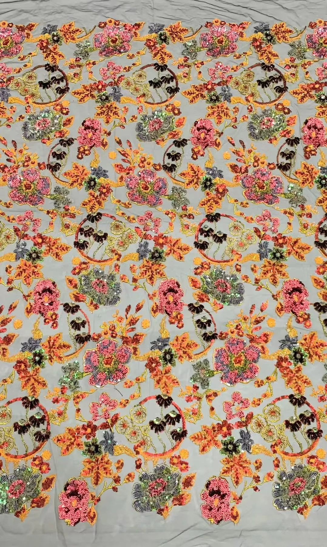 5 YARDS / 10 COLORS / Aurette Floral Beaded Embroidery Bridal Mesh Lace Fabric
