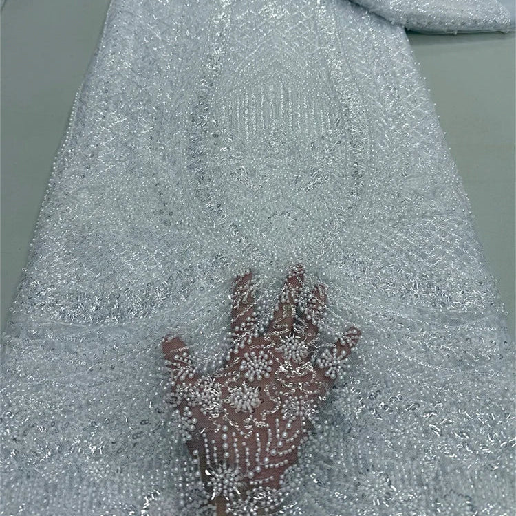 5 YARDS / 8 COLORS / Zeraphiel Beaded Embroidery Bridal Mesh Lace Fabric