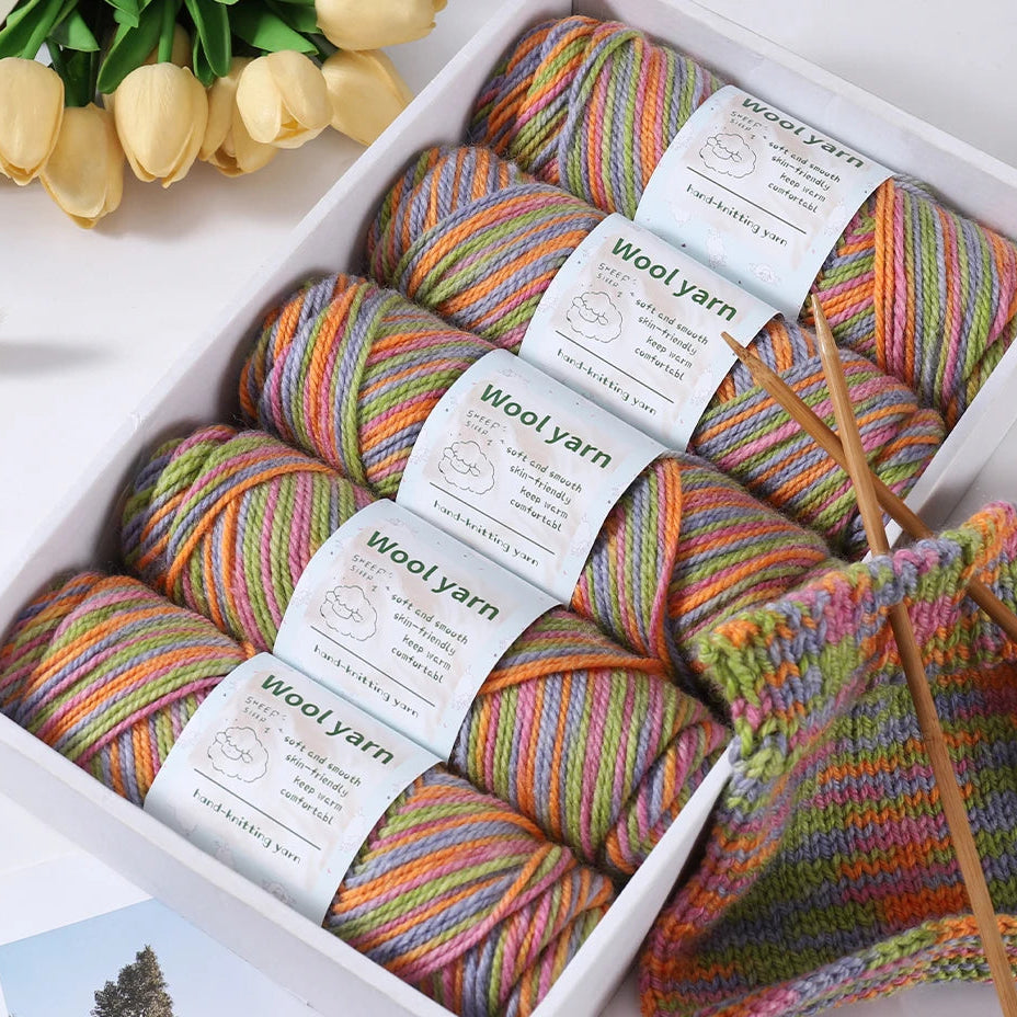 100% Wool Yarn Rainbow Color for Hand Knitting Crochet