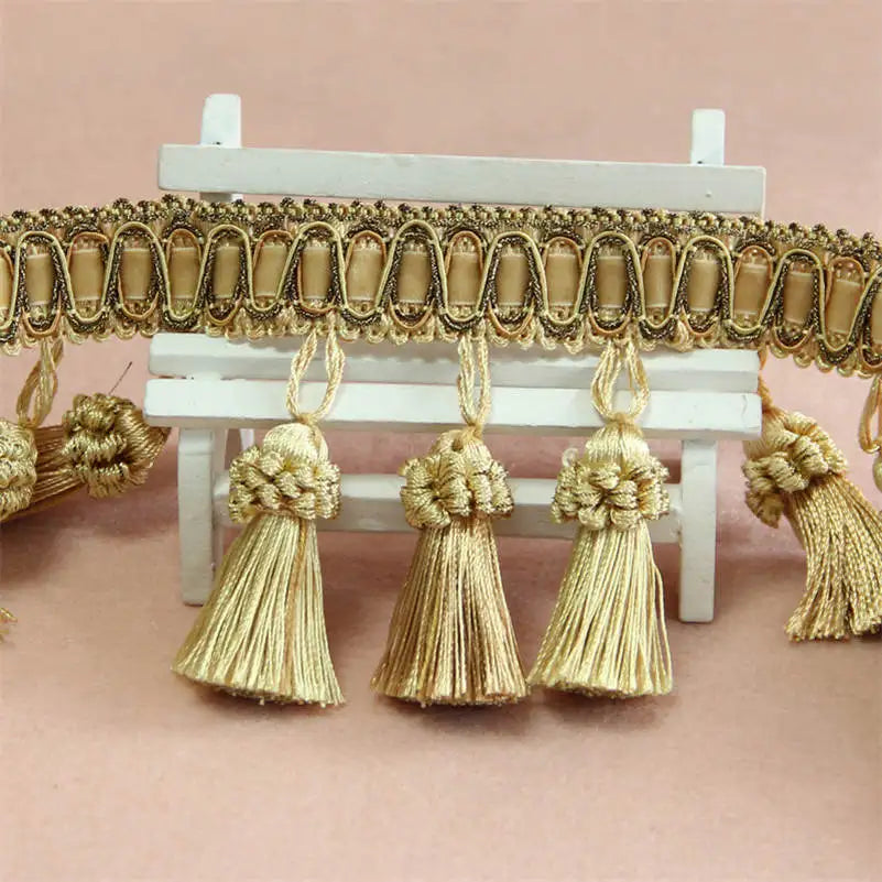 Trimmings can be added to curtains, upholstery, pillows, lampshades, headboards, clothing, fashion accessories, and other home decor items, to create an ornamental and unique look.