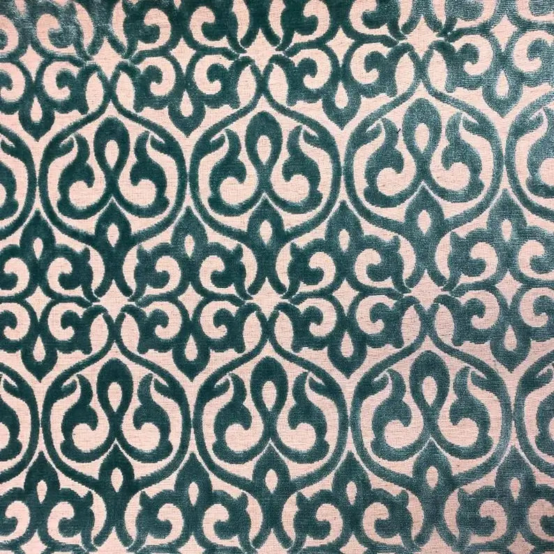 Zoltanov Royal Green Contrasting Damask Velvet Fabric