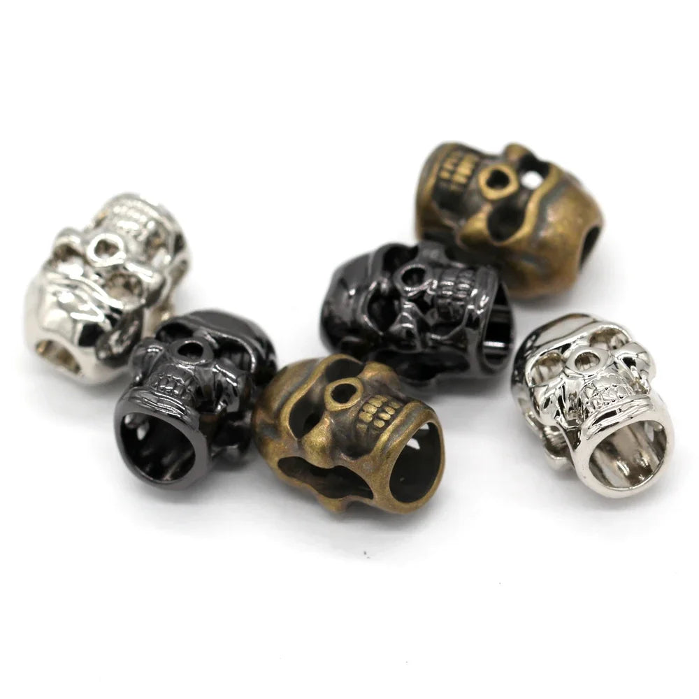 Skull Drawstring Metal Alloy Cord End Cap - 5 PC