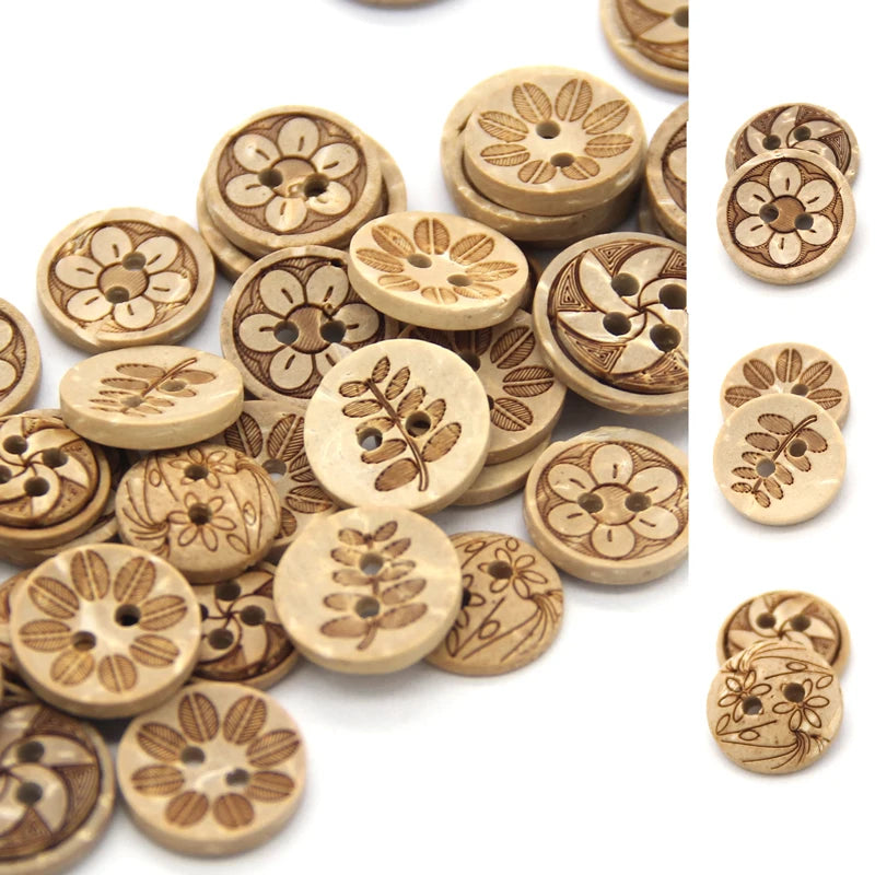 Casiex 30pcs Mixed Flower Carved Wooden Button - 30 PC