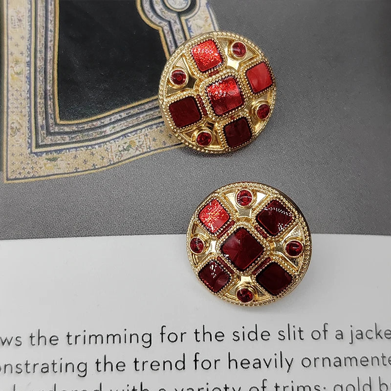 Torins 18/22MM Vintage Red Metal Button - 6 PC