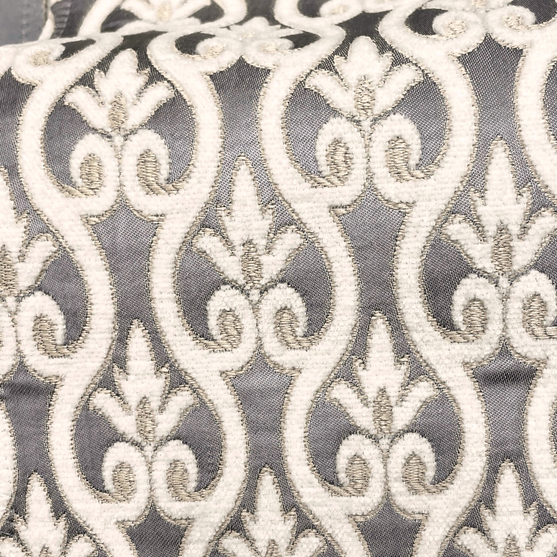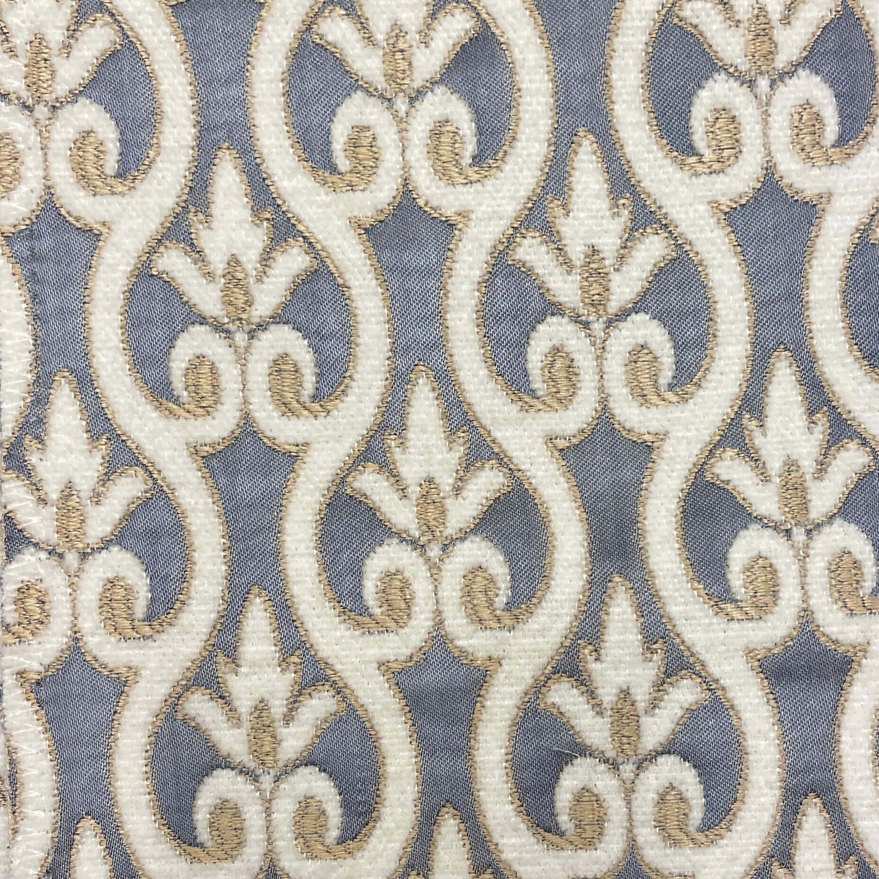 110" NORMANDY Slate Blue Gray Beige Brown Classic Contrasting Damask Velvet Fabric