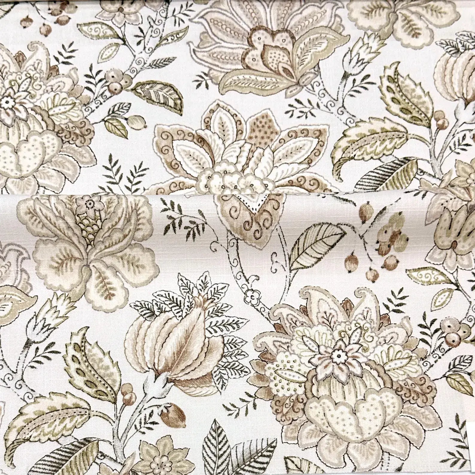 Rosette Beige Brown Floral 100% Cotton Fabric