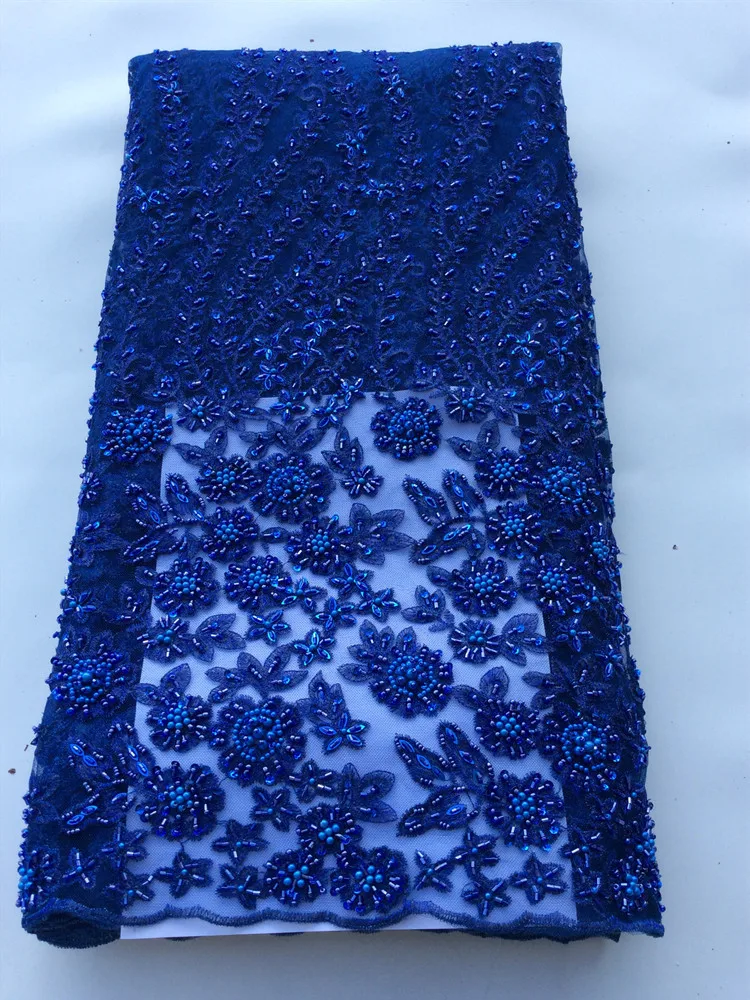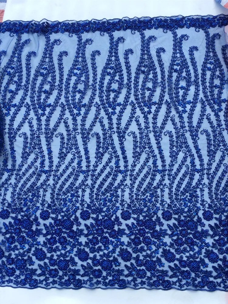 5 YARDS / Bleu Sequin Floral Perlé Broderie Glitter Mesh Dentelle Robe De Soirée De Mariage Tissu