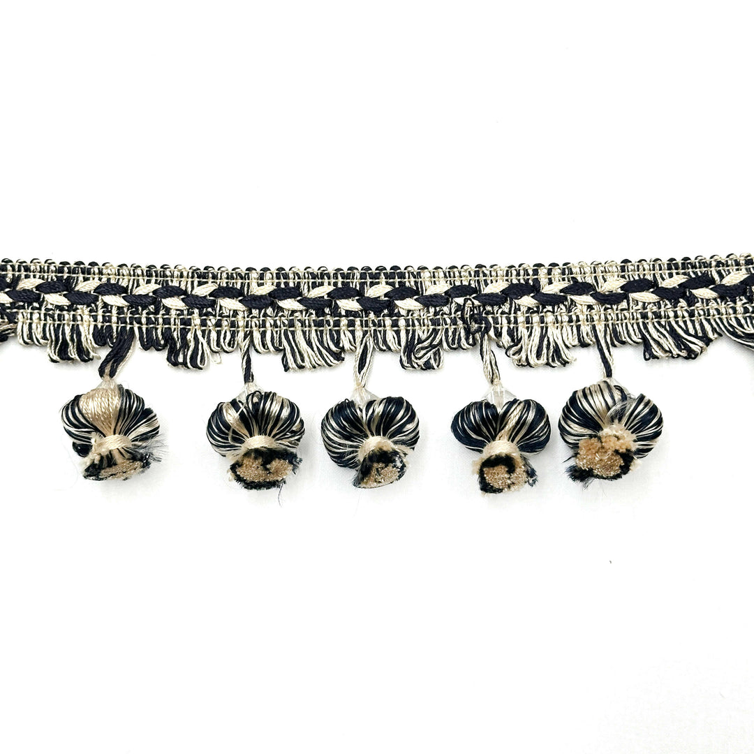 24 YARDS / VALENTINA 2.5" Tassel Fringe Trim Black Ivory
