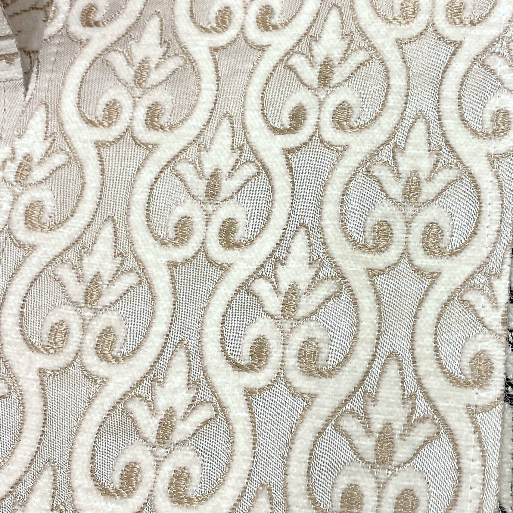 110" NORMANDY Gray Beige Classic Contrasting Damask Velvet Fabric