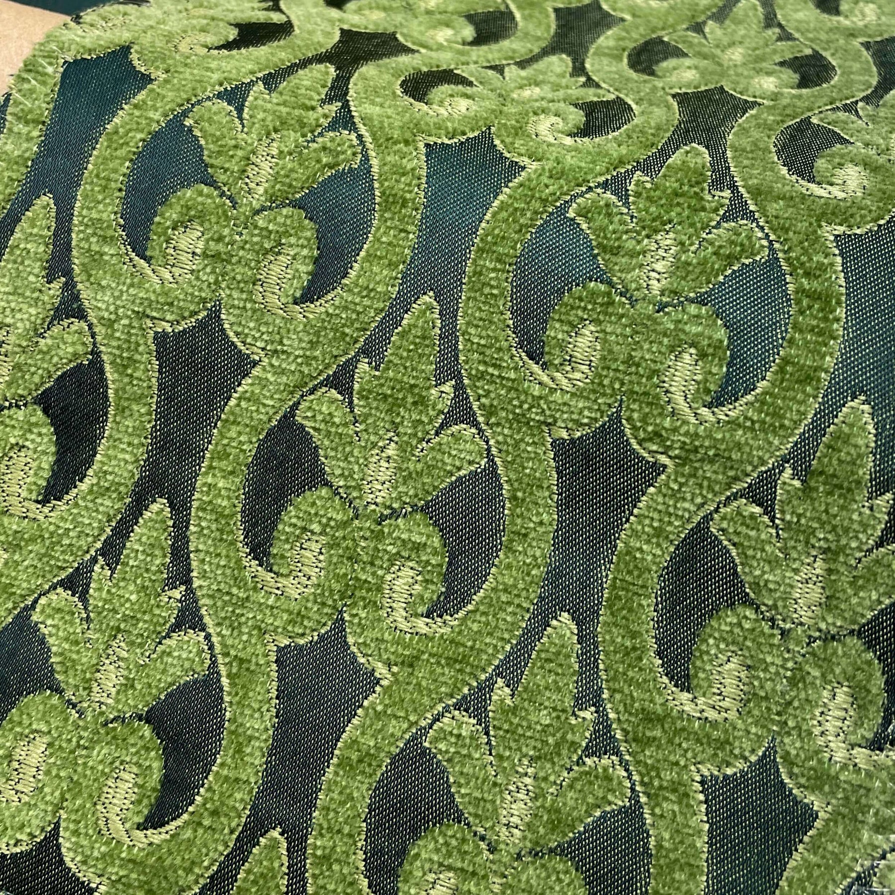 110" NORMANDY Hunter Green Classic Contrasting Damask Velvet Fabric