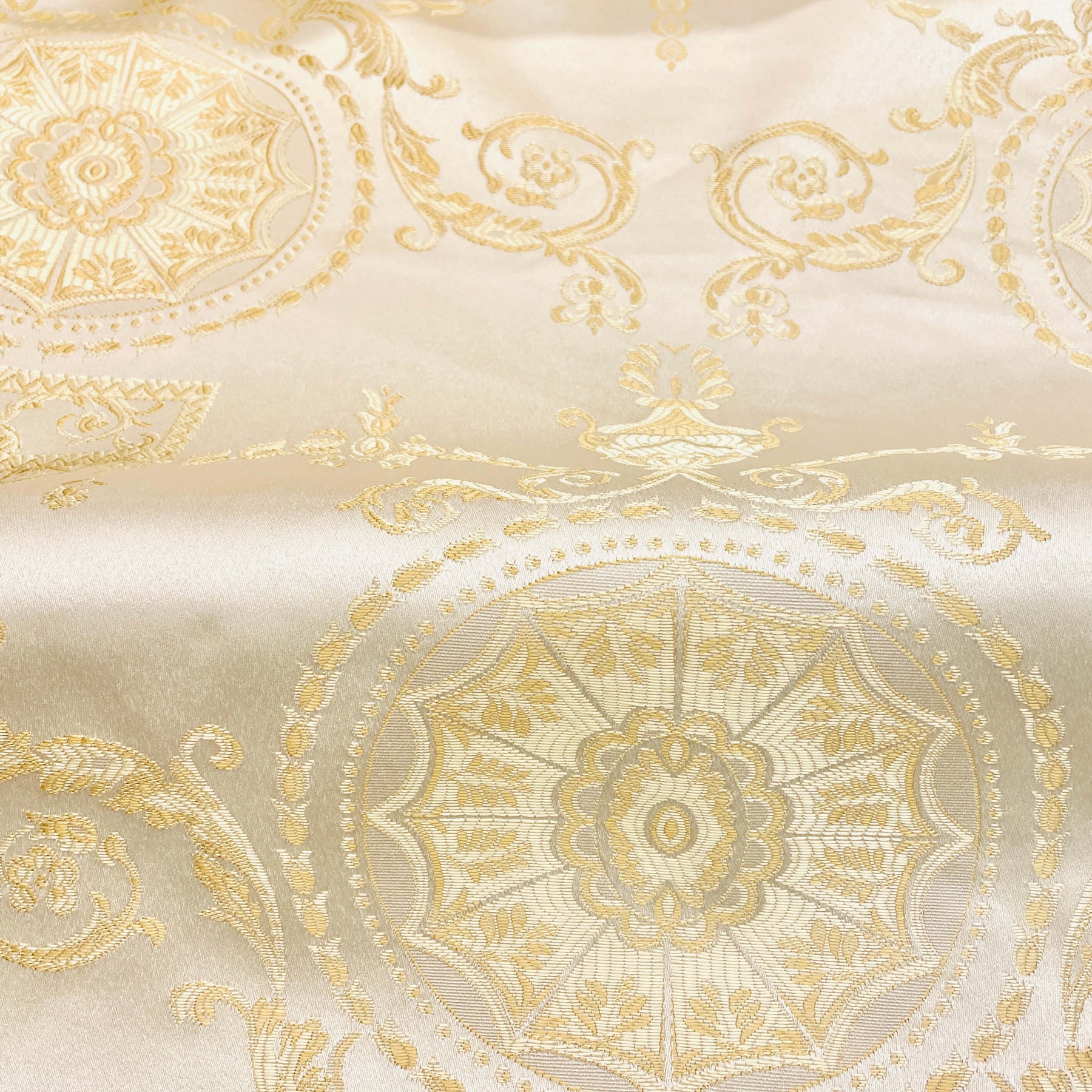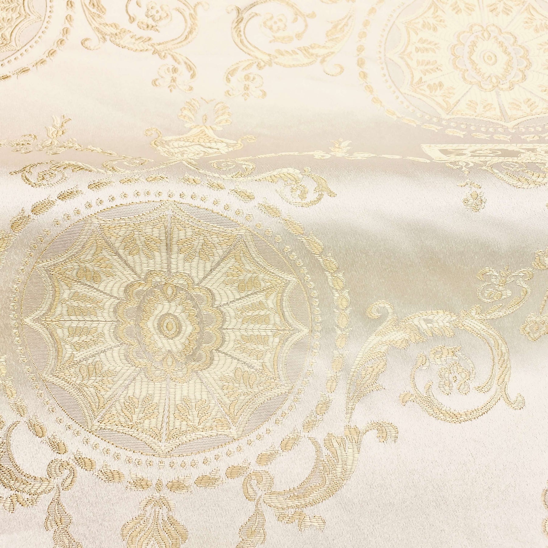Ivory Gold Classic Medallion Jacquard Fabric