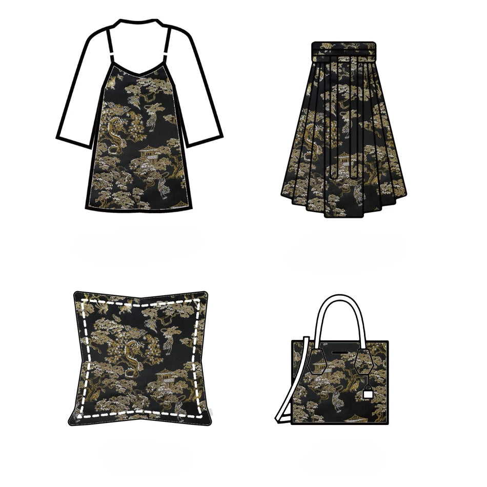 Caterine Gold Silk Dragon Tiger Pattern Jacquard Fabric