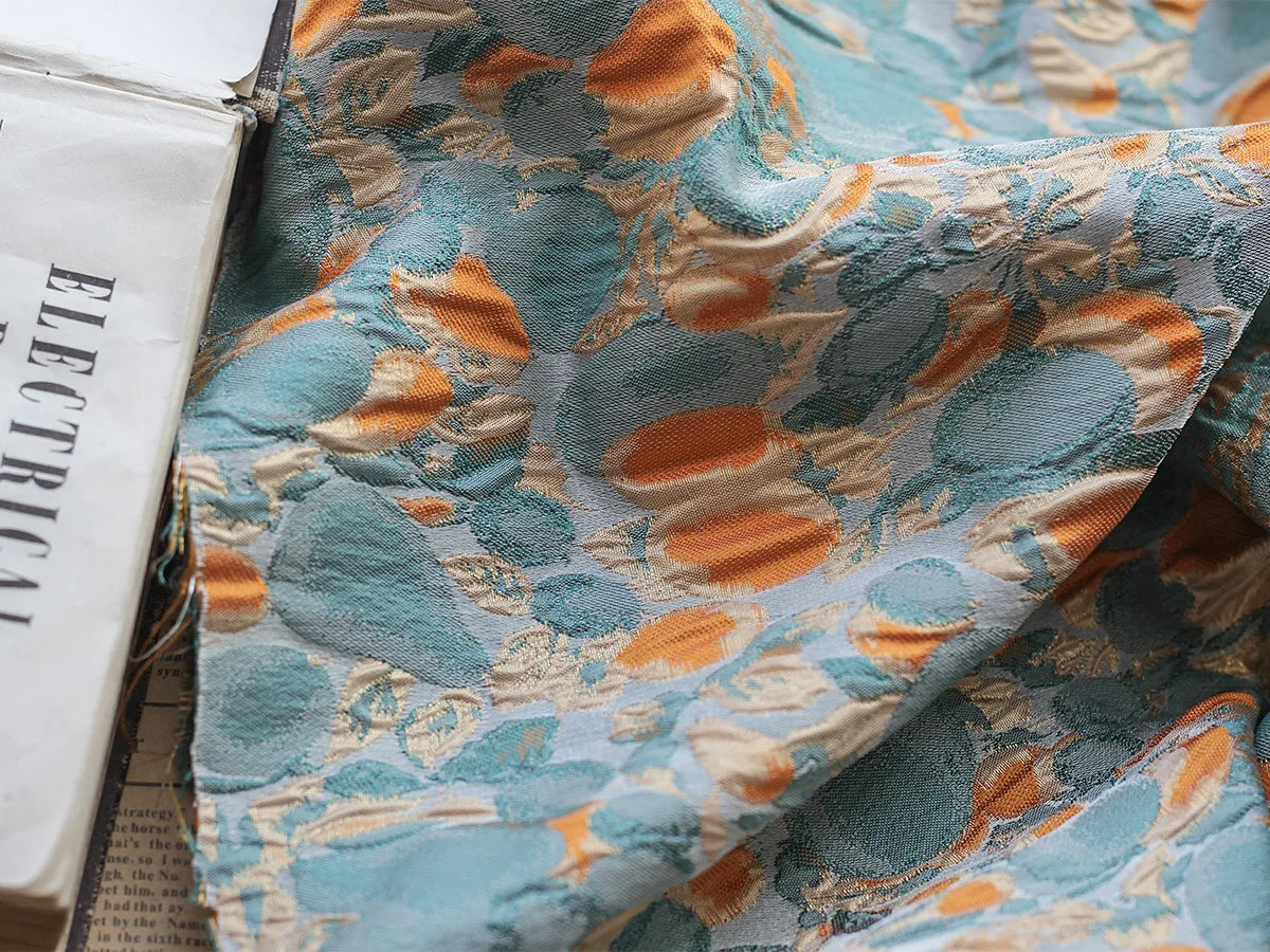 Zayn Embossed Blue Orange Yarn Dyed Jacquard Fabric