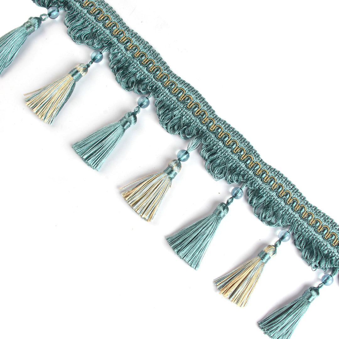 3 YARDS / 14 COLORI / LOLLA Pompon con perline e nappe e frange rifinite / Tendaggi, tappezzeria, cuscini, decorazioni per la casa