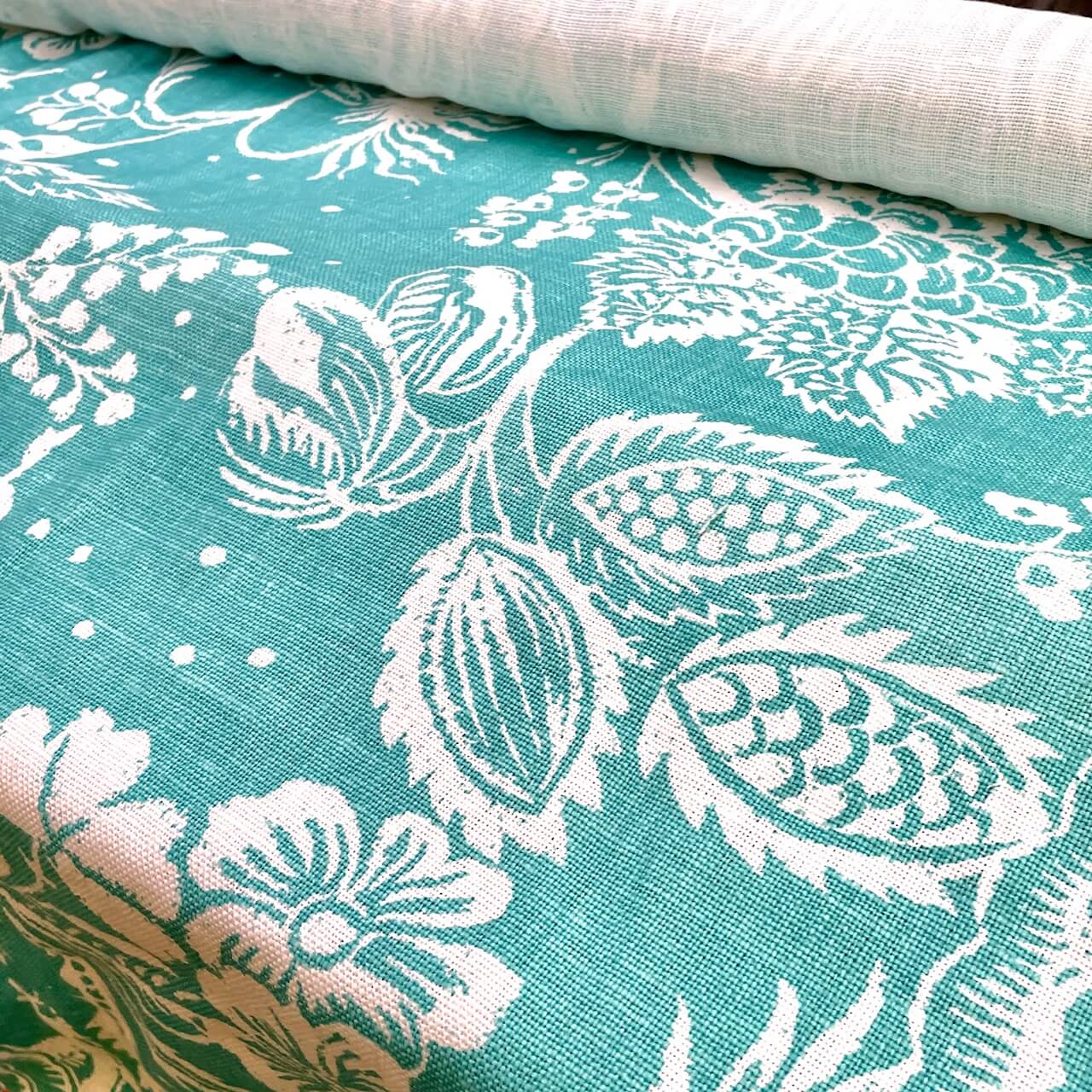 3 YARDS / 100% Cotton Turquoise Blue White Fabric