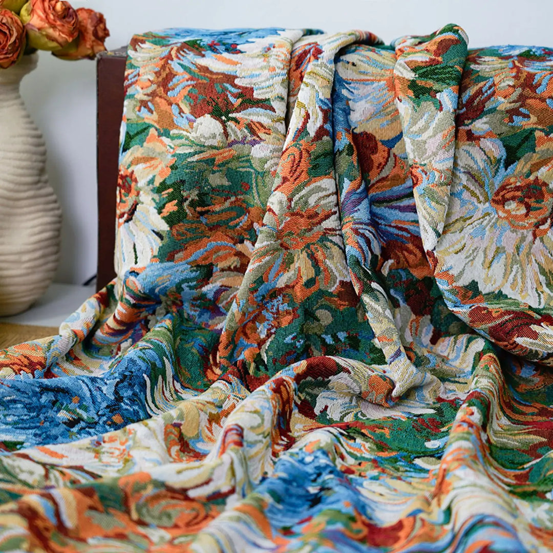 Tessuto in ciniglia con fiori floreali di grandi dimensioni, pittura a olio di Mindles