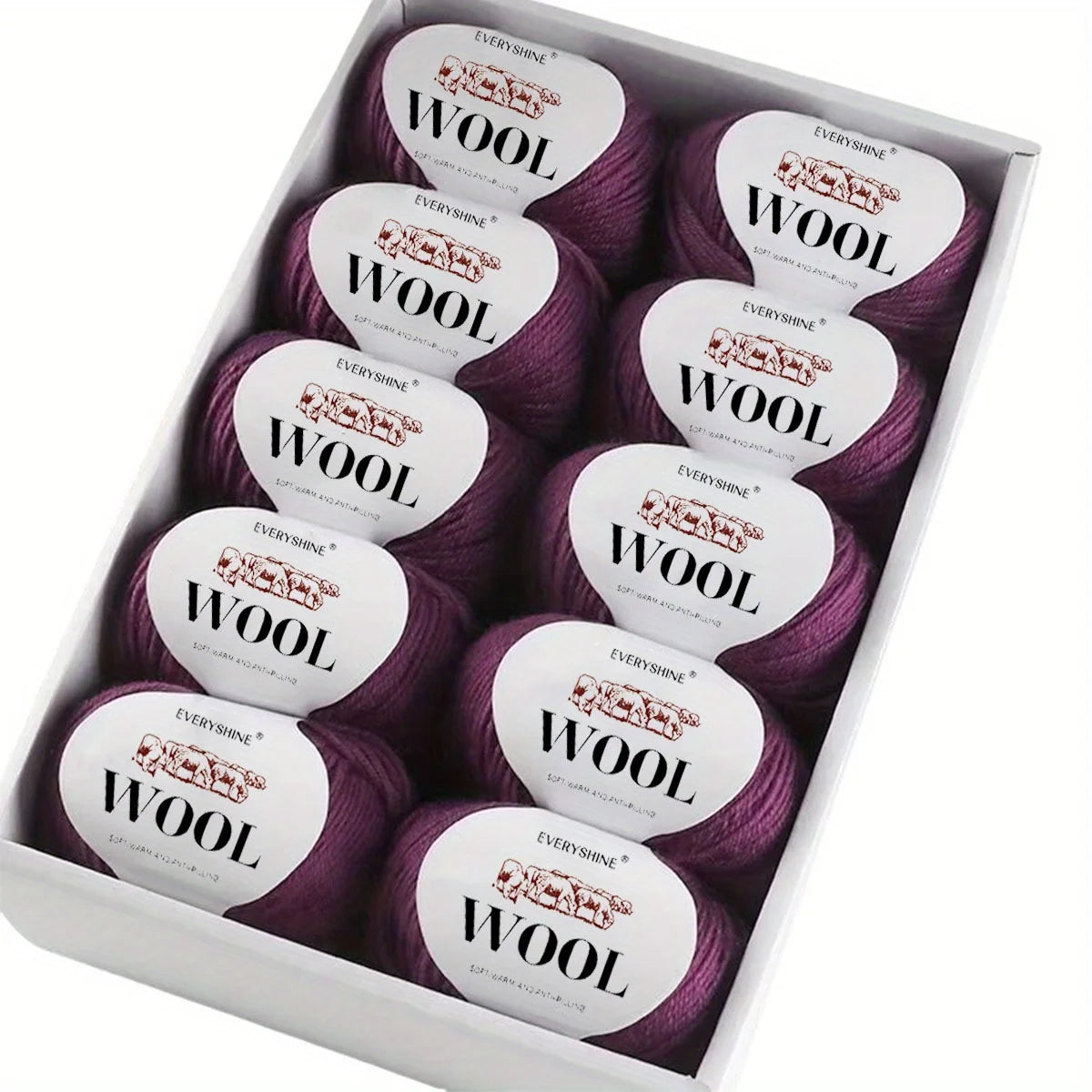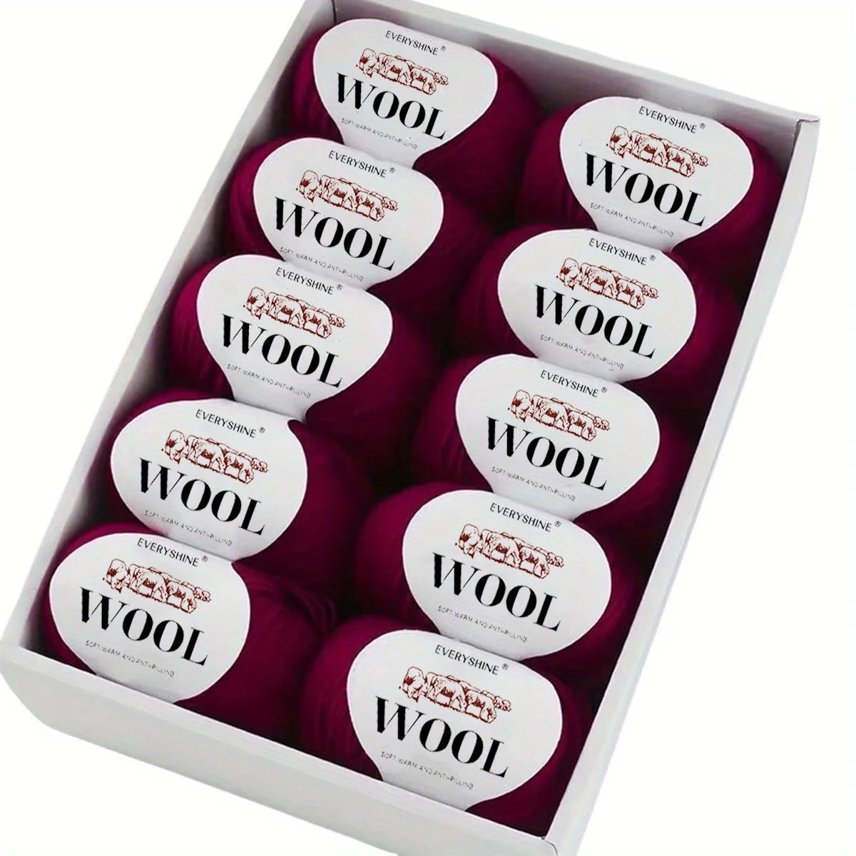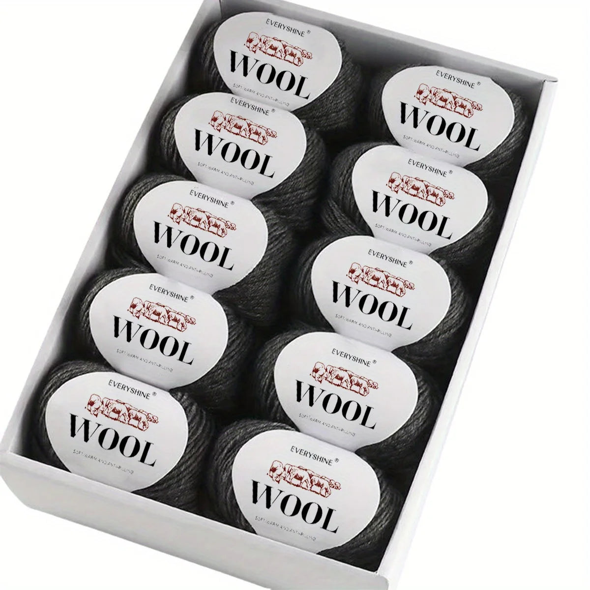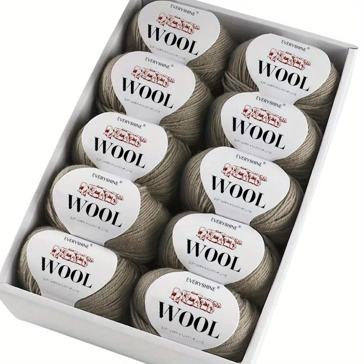 10-Pack Wool Blend Yarn Medium-Fine 80% Wool 20% Polyester