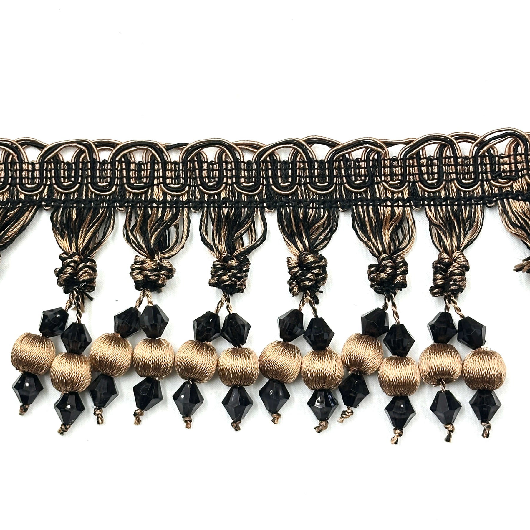24 YARDS / BELUS 3" Beaded Tassel Fringe Trim Black Brown